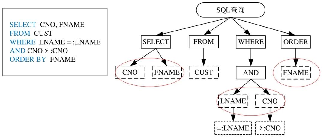图3 利用解析树获取查询中包含字段组合的示例