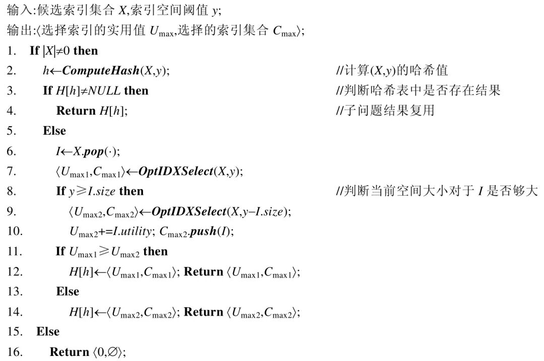 [size=1em]算法1.最优索引选择算法(OptIDXSelect).