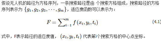 式中,F表示路径的适应度值, (xi,yi,ti)(xi,yi,ti) 代表第i个搜索方格的中心点坐标。