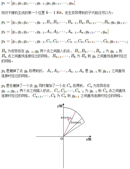 变异包含在两个点之间插入一个点、在路径上删除一个点、在路径上删除一个点同时增加一个点这三种情况,图5为在路径上删除一个点之后再增加一个点的变异过程的示意图。