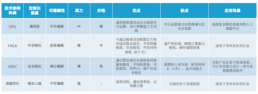 云端AI芯片、边缘及终端AI芯片;根据其在实践中的目标,可分为