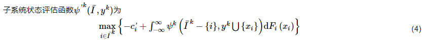 定义4(系统状态评估函数)。系统状态评估函数为当已知价值集合为y且未探索方案集合为I¯I¯时,执行最优策略能够获得的期望回报值,记为ψ(I¯,y)ψ(I¯,y)。