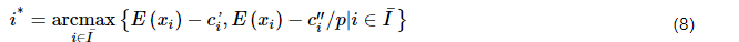 根据系统状态ψ(I¯,y)ψ(I¯,y)和指标集合{c'i,c′′i/p|i∈I¯}{ci',ci″/p|i∈I¯},可以设计一种简单但最优的搜索规则,分为判断规则和选择规则。判断规则是指如果Agent要进一步探索未知方案,则选择决策指标最大的未知方案,同时选择对应的行动;停止规则是指如果当前最大价值大于所有未知方案的决策指标时,则停止搜索并选择具有最大价值的方案作为最终方案。
